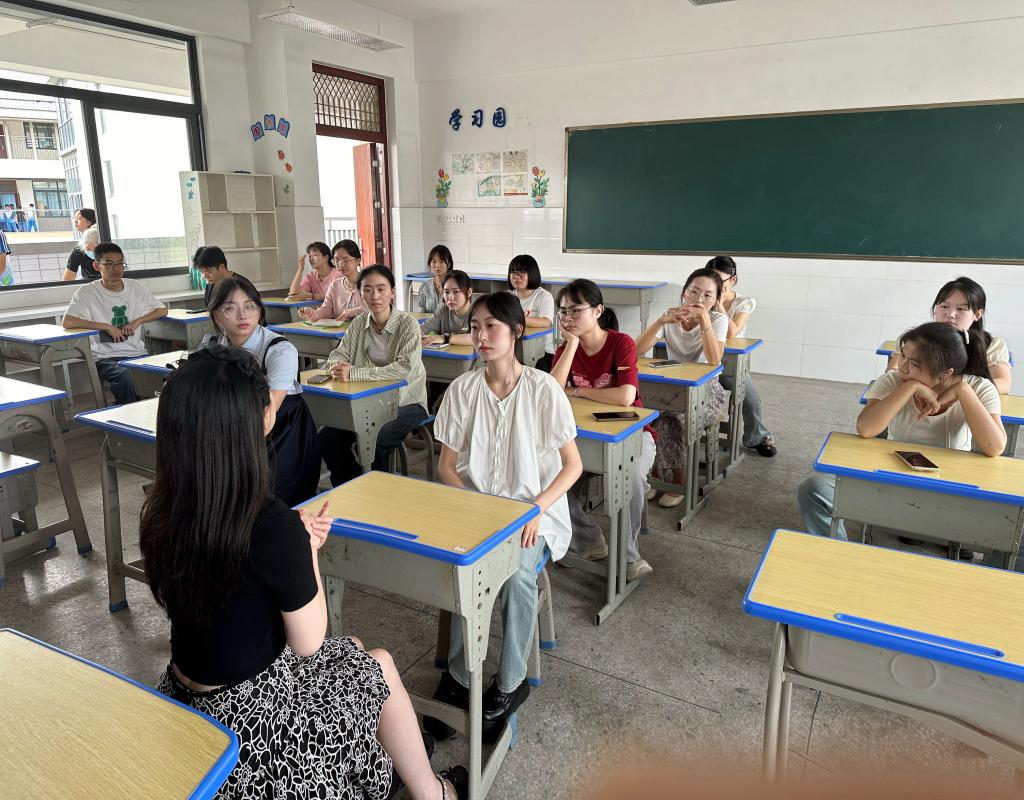 抵达实验公司后,两位老师与全体实习生进行了亲切的座谈会。会上,实习生们纷纷分享了自己这一周来的实习体会。他们表示,目前与校外指导老师的相处十分融洽,工作氛围积极和谐。在实习内容的安排上,实习生们现阶段主要聚焦于了解学情、细致批改作业以及认真聆听课程,同时,校外指导老师也会悉心引领他们逐步参与课堂教学,给员工上课,借助这些丰富的实践活动,实习生们对中学英语教学获得了更为直观且深刻的理解。