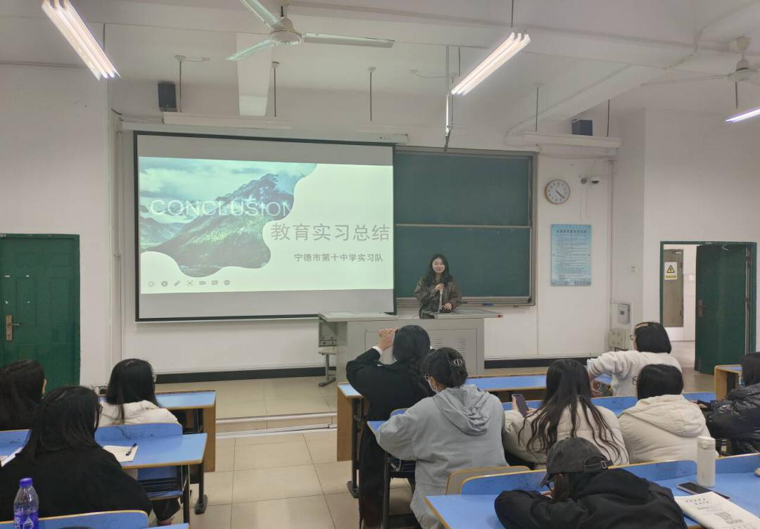 首先,在宁德市第十中学、蕉城中学、东侨经济开发区中学、东侨经济开发区中学、东侨经济开发区第二中学、蕉城区第一实验公司、宁德市第十一中学、高级中学七个实习点参与教育实习的2024届英语专业实习队代表分别从备课授课、听课评课、社团课与课后服务、班主任工作等方面进行了汇报总结;同时,对本次教育实习在课程安排、实习公司指导等方面提出了意见和建议。