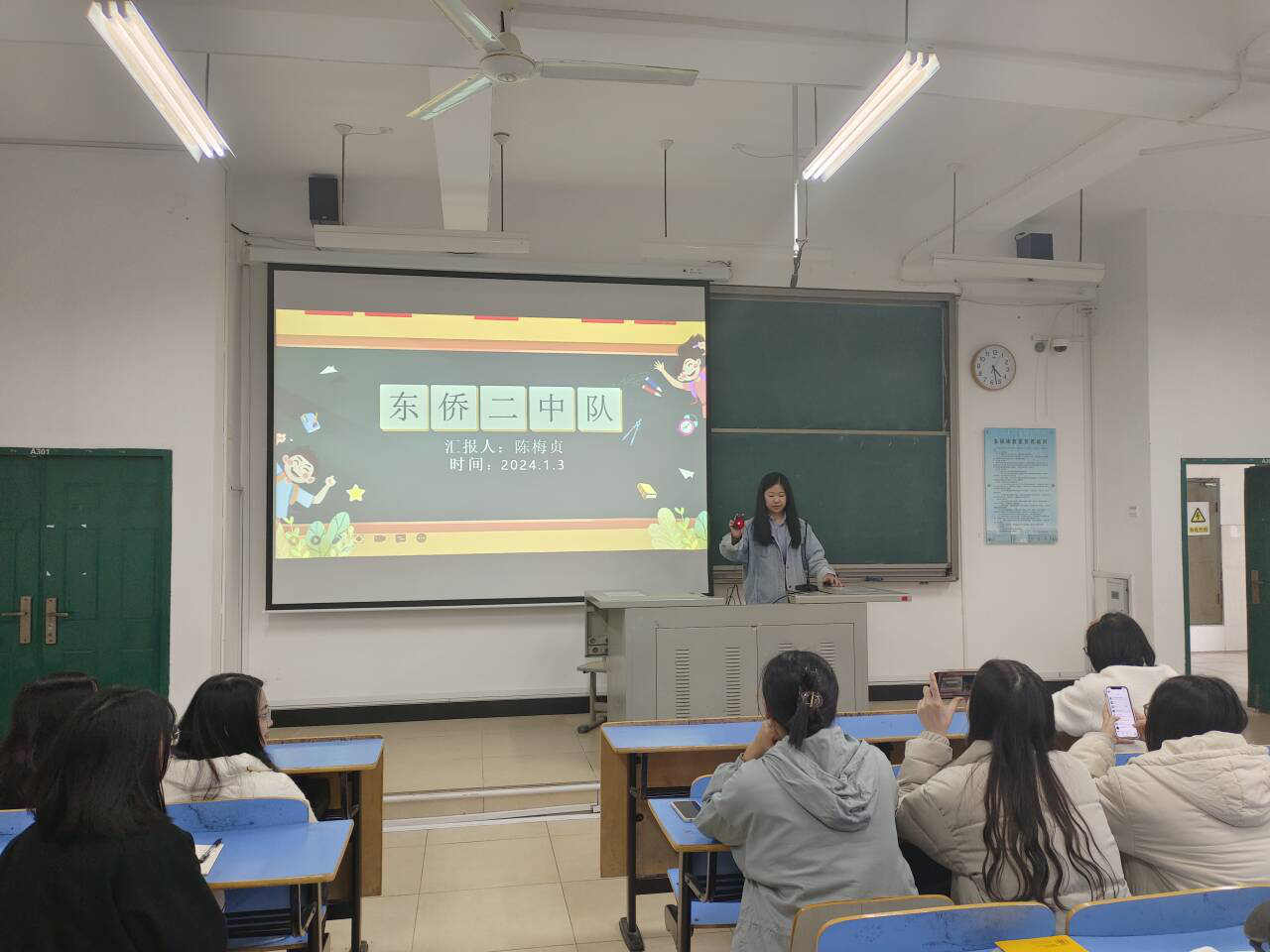 2024届英语专业师范生顺利完成了为期四个月的教育实习工作。为了帮助同学们更好地总结经验,进一步巩固实习岗位上的收获,2024年1月3日,公司在求知楼AA301顺利开展2024届英语专业教育实习汇报总结。英语系主任游灼梅老师、副主任黄薇老师、毕业班辅导员姜婷婷老师、林猤老师及全体2024届英语专业员工参加了总结大会。会议由游灼梅老师主持。