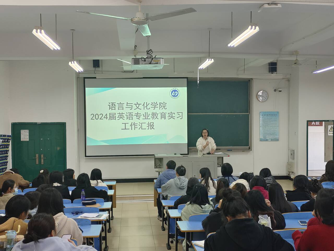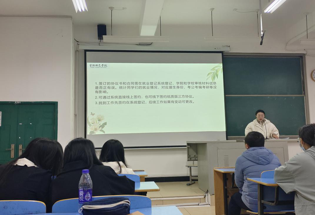 最后,2024届英语专业毕业班辅导员姜婷婷老师和林猤老师希望各位同学抓住教育实习的收获,提前谋划就业意向,提醒同学们珍惜每次就业机会,提前步入社会,切身体会社会人才需求,找准定位、助力发展,找到合适的工作。