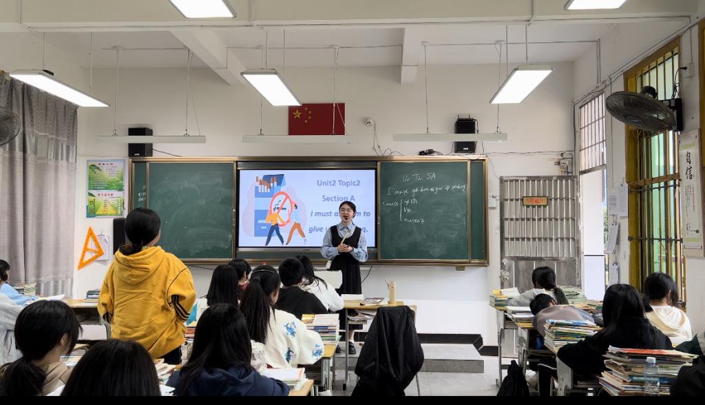 本次汇报课由王青芬同学在初二(1)班进行课程的教学展示,授课单元为Unit2 Topic2 Section A, I must ask him to give up smoking。校内外指导老师及实习队全体成员到场听课。汇报课活动多样,操练及时,教师大方自然,员工参与度高,课堂整体氛围良好。