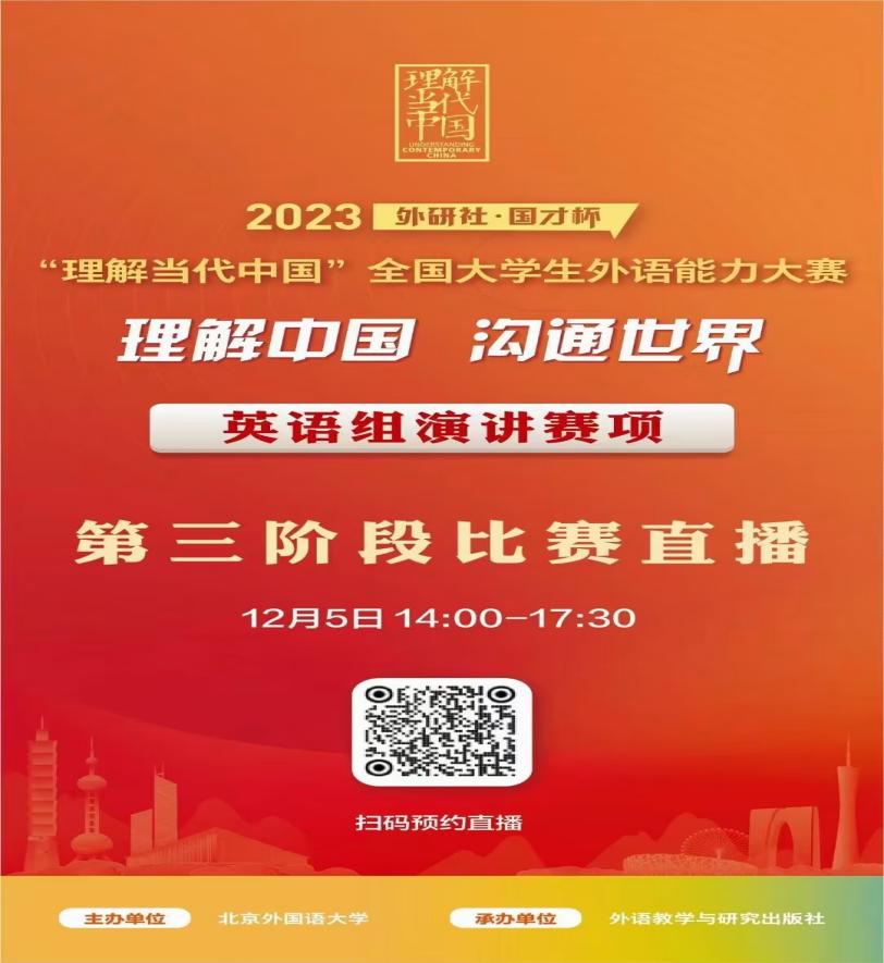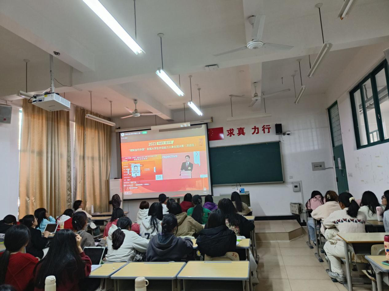 为了进一步推动“三全育人”综合改革试点工作,落实2023年校级卓越拔尖人才培养计划立项名单试点专业的持续创新人才培养模式,提升人才培养质量,12月5日下午,语言与文化公司英语系在求知楼AA306举行2023年英语卓越教师培养实验班活动。英语系主任游灼梅主持活动,培训班全体学员参加,共同观看“理解当代中国”全国老员工外语能力大赛英语组演讲赛项第三阶段比赛直播。