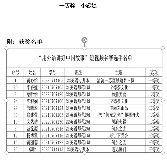 本次比赛共收到30份作品,经过大赛评委崔柳教授等评委认真地评审,最终确定了大赛的获奖结果,一等奖2名,二等奖3名,三等奖6名。
