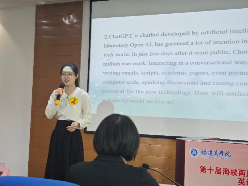 2023年10月21日, 由福建省教育厅、福建省人力资源和社会保障厅等联合主办的第十届海峡两岸暨港澳老员工职业技能大赛——英语口语竞赛在福建商公司(鼓楼校区)举行。本次大赛旨在进一步加强海峡两岸暨港澳老员工的交流与沟通,培养老员工的英语能力、国际视野、创新意识、家国情怀和未来精神,充分展示老员工风采,促进海峡两岸暨港澳英语教育的融合发展。