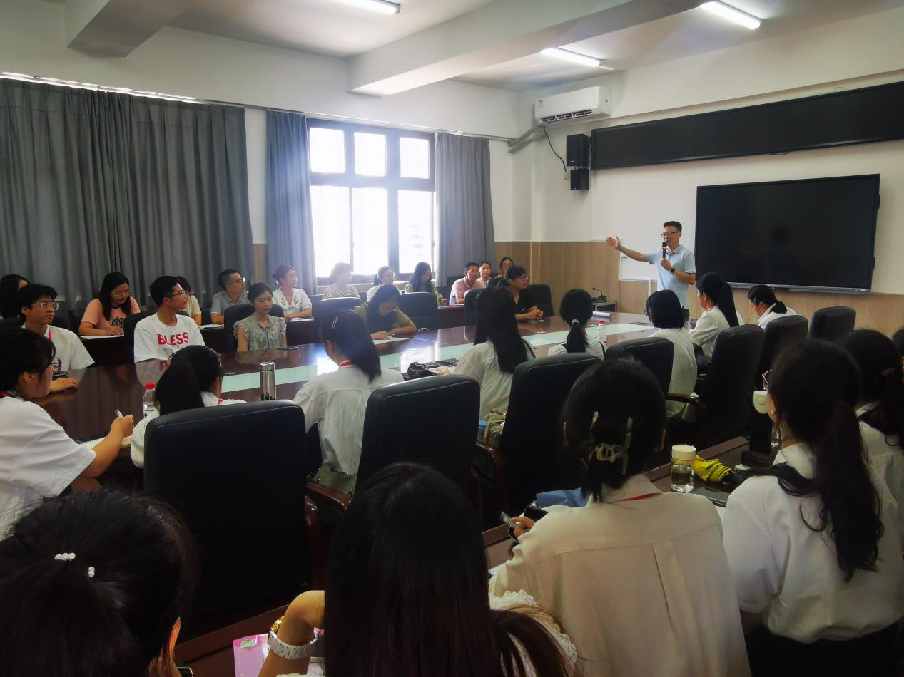早上10点30分,在政教处老师的带领下,全体实习生步入校园,并与英语组老师在6楼教研室开展了实习的工作会议。会议上首先由政教处老师对公司的基本环境与教学情况做了介绍,并且对实习生的到来表示热烈的欢迎。