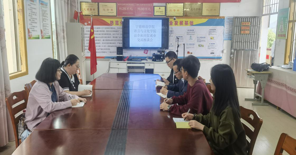5月12日,语言与文化公司英语系主任游灼梅老师、副主任黄薇老师、英语系教师林海英、刘新颖一行人赴宁德市第十一中学开展访企拓岗促就业专项行动。