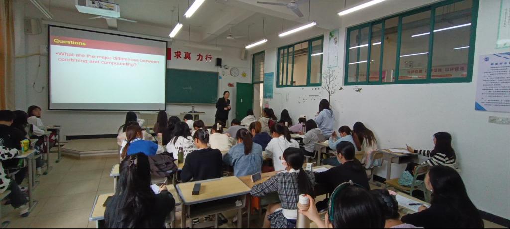 2023年4月27日下午,公司英语系张妙珍博士在求知楼A302开设了一场《英语词汇学》教学公开课,授课对象为2021级英语(师范)1班的全体员工,英语系教师以及其他系部的部分教师参与了听课及评课活动。