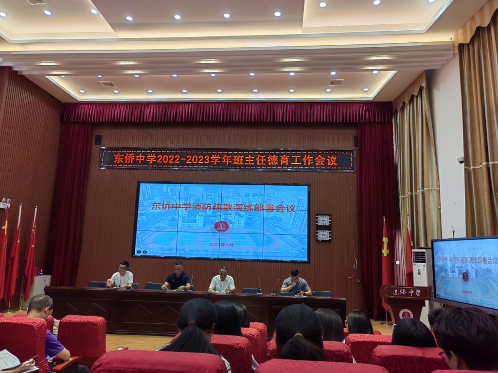 随后,在本部三楼的学术报告厅开展了一次本部实习生的全体会议,出席会议的有东侨中学副董事长陈树建老师、政教处主任章高招老师、政教处副主任陈孝松老师、校安办主任周义辉老师、三个年段的班主任,以及本部全体实习生。会上,校安办主任周义辉老师首先对今天下午的消防疏散演练进行了详细的部署工作,包括路线、注意事项等等。接下来政教处副主任陈孝松老师具体说明了实习生跟岗班主任的分配情况,实习生和对应的实习班主任举手示意。之后副董事长陈树建老师就禁止员工携带智能手机进入校园与防范校园欺凌事件两个专题进行了部署工作,要求班主任要定期对班级情况进行摸排,对校园欺凌的苗头引起高度重视。临近会议的尾声,政教处副主任陈孝松老师与实习生们分享了自身管理班级的心得,希望他们能够把握此次实习的机会,在实习期间勇于探索,勤学好问,从实践中感悟真知,积累初步工作经验,为自己的为师之路打下良好的基础。