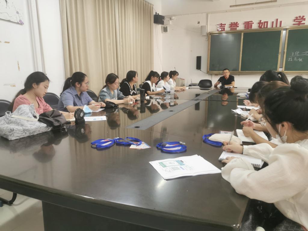 本部对接完毕后,刘澍轩等六名实习生前往万安校区,有序开展实习工作。在万安校区教导处主任的接洽过后,本分队实习生参加了上午十点十分开始的全校班主任会议,了解了本校的各种规章制度以及班主任工作的具体要求,如公司实行的“三托”制度、禁止智能手机进公司和校园疫情防控等主题内容。在会议结束后,实习生们开始与各自的指导教师对接,进行班主任工作下行具体化,了解了各自负责班级的详细情况,部分员工开始完成指导教师下达的任务。