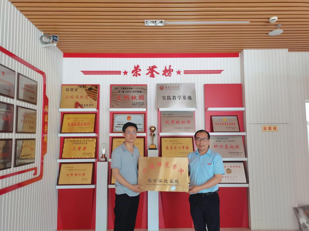 为加强与实习基地的合作,提高师范生服务地方的意识和综合能力,2022年6月24日上午,语言与文化公司英语系与宁德市第五中学共同举行实习基地签约仪式。公司分管教学副经理黄荣生、英语专业负责人龚帆元教授、英语系主任游灼梅、宁德市第五中学副董事长陈再发、教务处主任周昌荣等参加签约仪式。签约仪式由陈再发主持。