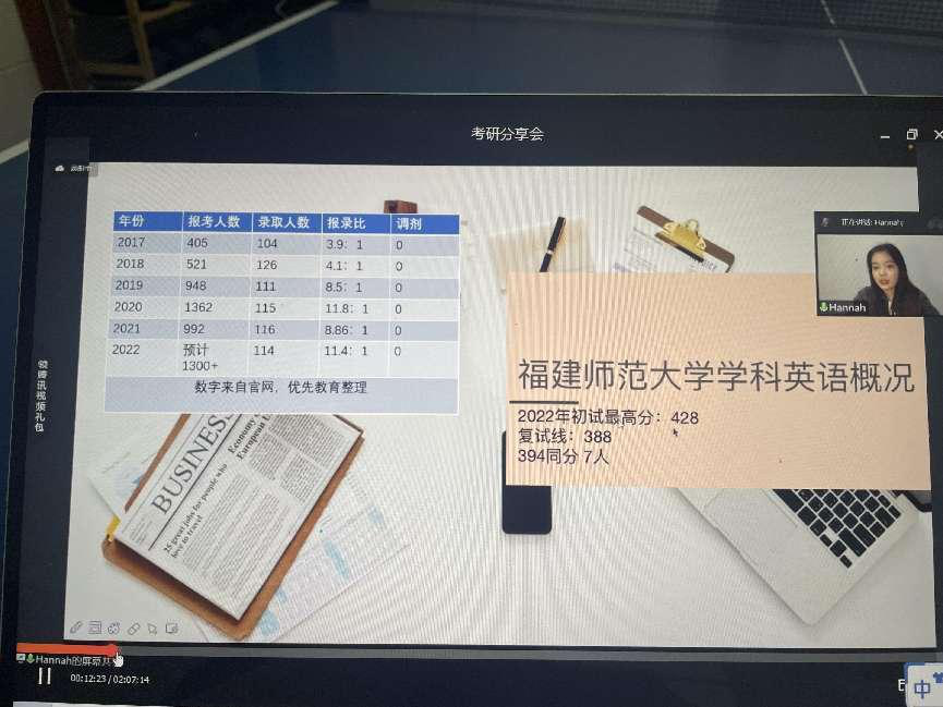 被福建师范大学学科英语专业录取的2018级英语专业林涵锐学姐从考研科目,时间规划和心态总结三个方面为英语专业员工进行了分享,详细地介绍了学科英语每门考试科目的备考技巧和做题方法。林涵锐学姐最后以“考不考研,结果如何,只要努力,你的人生之路都会有其绚烂之路”这句话勉励全体同学要勇于尝试,不轻易放弃考研这条道路。