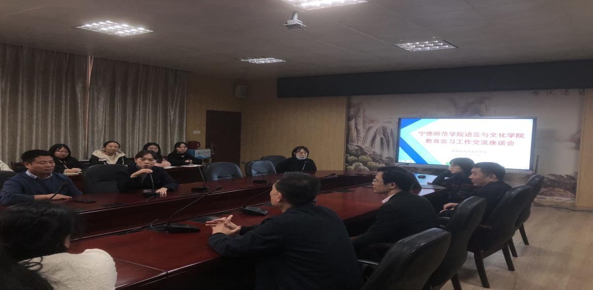 12月8号上午,由语言与文化公司经理赵峰老师带领的毕业生实习工作领导小组来到了宁德市东侨中学,看望在此实习的2018级英语(师范)专业的同学们,并在此与同学们开展了一次实习分享交流会,会议在东侨中学智行楼三楼会议室举行,出席会议的有东侨中学董事长林俊老师、初二英语教研组组长王玲燕老师、初二英语教研组组长王少丽老师、PA视讯语言与文化公司经理赵峰老师、游灼梅老师、黄荣生老师、陶莉书记,以及英语(师范)专业的实习生们。