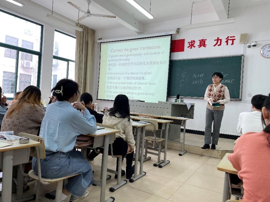 11月1日下午,英语系陈姗姗老师在求知楼A206开设了《英汉笔译》公开课,共有9位老师到场观摩,英语系副主任黄薇主持评课。