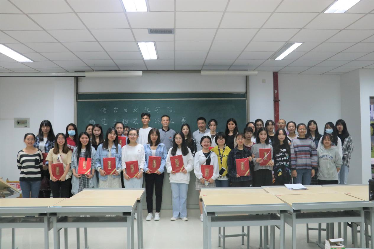 为加强师范生三笔字训练,切实提升员工书写技能水平,公司先后于2020年10月17日和10月24日成功举办师范生粉笔字书写、硬笔书法比赛。按照比赛方案,参赛选手经过初赛、复赛、决赛,并经由评委老师们认真初评、复评、终评,分别评出:粉笔字组一等奖3名、二等奖7名、三等奖8名、优秀组织奖2个班级;硬笔组一等奖4名、二等奖8名、三等奖12名、优秀组织奖3个班级。赵峰经理、黄荣生副经理等为获奖员工和班级颁发奖状和奖品。近年来,语言与文化公司十分重视师范生教师职业技能培养,通过多种方式和途径对员工进行有计划、多层次训练,成效明显,成绩突出。
