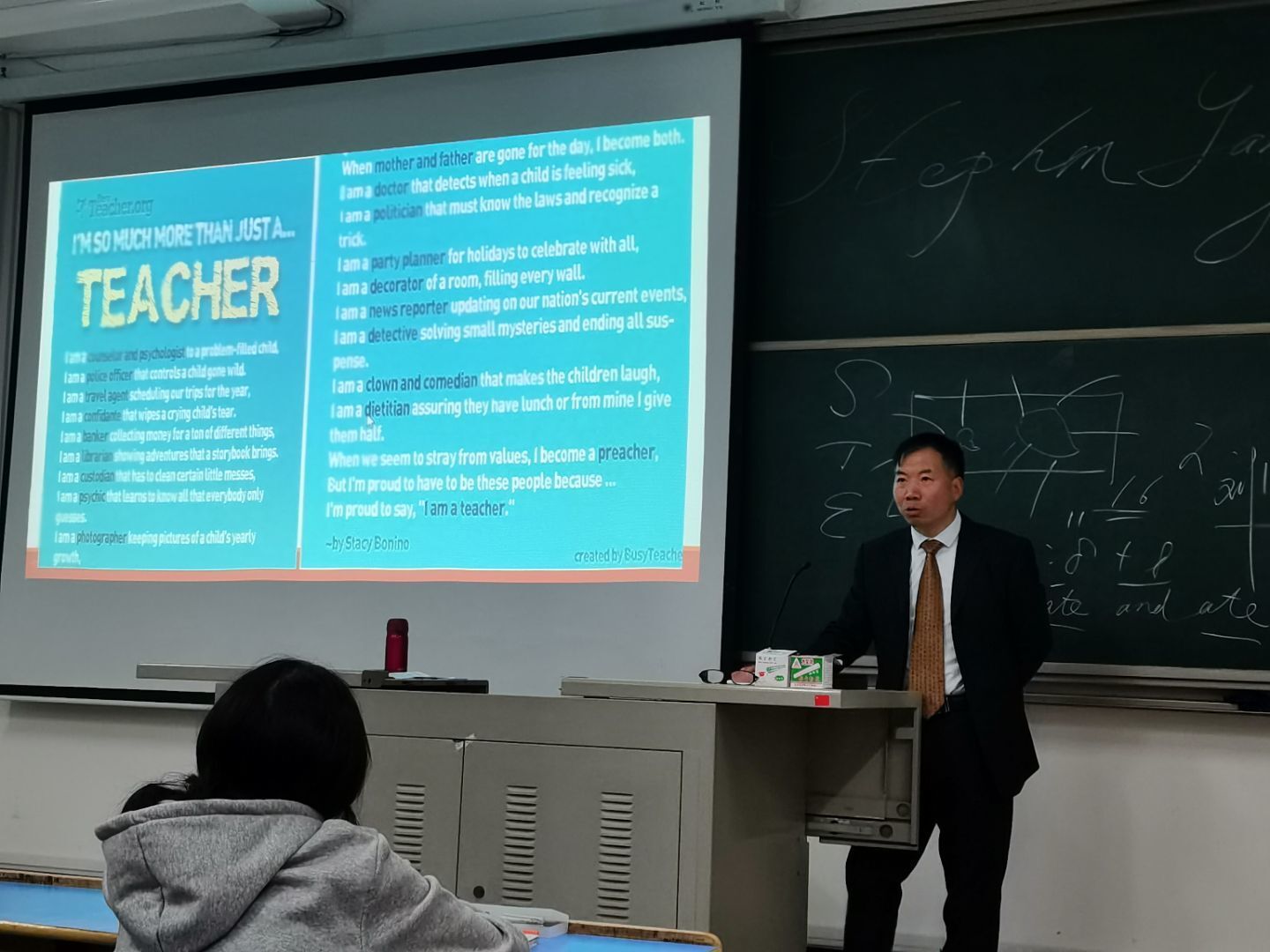 2020年12月11日,语言与文化公司英语系优秀员工、外聘教师杨良雄教授在求知楼AA301为英语系师生开设“TPACK视域下未来英语教师专业发展规划”学术讲座。