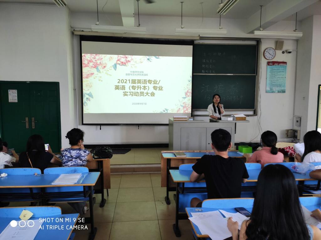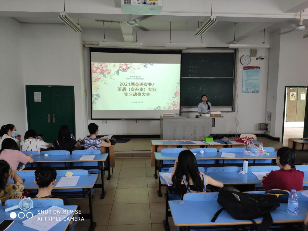 新的学期迎来新的挑战,即将毕业的大四员工们面临着实习的挑战。2020年9月7号早上十点,语言与文化公司于求知楼AA201教室召开了2021届毕业生实习动员大会,布置新一学期的学习任务,黄荣生副经理、陶莉副书记、游灼梅老师、黄薇老师以及数位校内指导教师参加了会议,这次会议由黄薇老师主持。