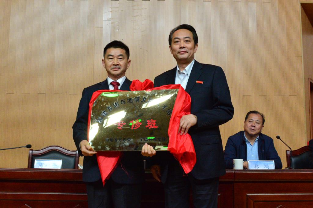 开班仪式上,还进行了福建方志与地情文献人才培养专修班的授牌,福建省地方志编撰委员会主任陈秋平授牌,语言与文化公司经理龚帆元接牌。