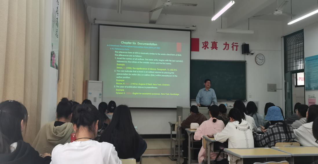2023年4月28日上午第三节,公司英语系林煌贿博士在求知楼A206开设了一场《学术写作与研究方法》教学公开课,授课对象为2020级英语(师范)1班的全体员工,英语系教师以及其他系部的部分教师参与了听课及评课活动。