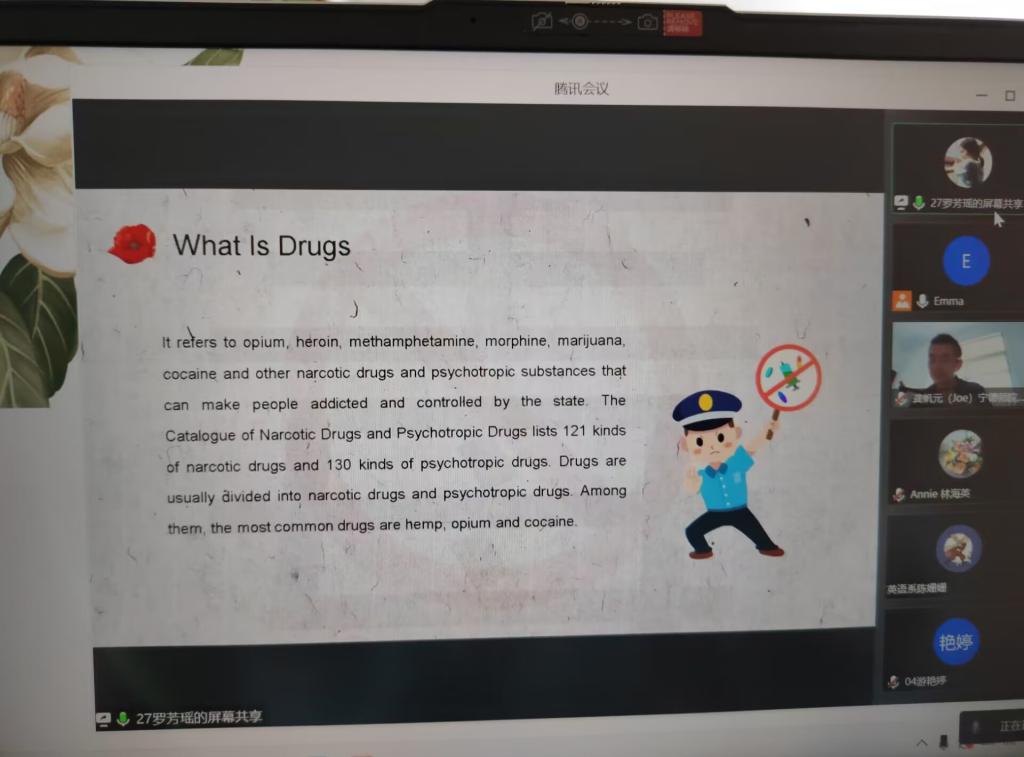 2022年11月1日上午,2022-2023学年第一学期英语系的第二场教师教学公开课在腾讯会议线上举行,本次公开课授课主题为《高级英语听力1》Unit 4 Afghanistan-addicted to Heroin,由陈首焱老师授课,授课对象为2021级英语(师范)专升本班的全体员工。英语系部分教师参加了听课观摩活动。