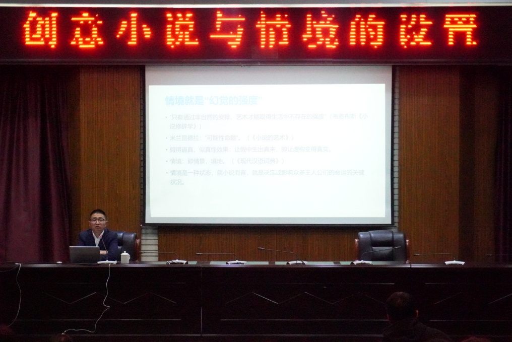 2025年3月21日下午14:30,PA视讯行政楼三楼报告厅座无虚席,一场主题为"创意小说与情境的设置"的学术讲座在此热烈开讲。讲座由公司举办,厦门大学徐勇教授主讲,PA视讯官网副教授许陈颖主持。