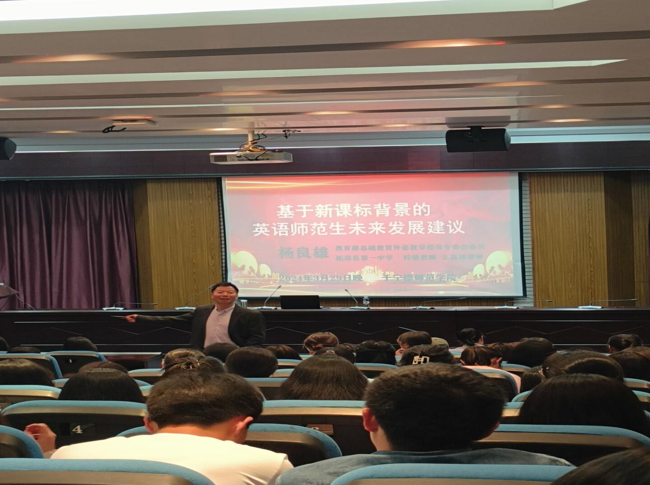 为了进一步推进英语专业师范认证整改的需要,推动“三全育人”综合改革试点工作,落实2023年校级卓越拔尖人才培养计划立项名单试点专业的持续创新人才培养模式,提升人才培养质量,2024年3月29日晚,公司邀请教育部基础教育外语教学专业委员会委员、享受国务院政府特殊津贴专家、全国劳动模范、省杰出人民教师、公司客座教授杨良雄教授在为我们开展了“基于新课标背景的英语师范生未来发展建议”主题讲座。本次讲座由PA视讯官网副经理黄荣生主持,公司闽江学者“讲座教授”崔丹及英语系师生共计200人参加此次主题讲座。