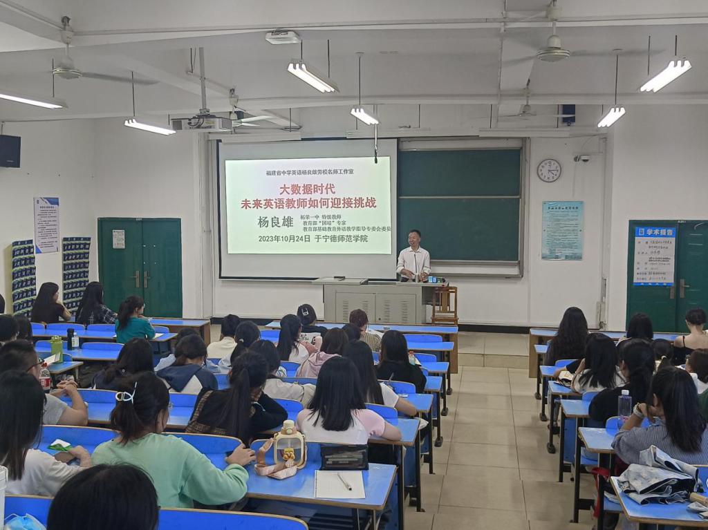 2023年10月24日下午,为了促进英语专业省级一流专业建设和师范认证二级认证整改,语言与文化公司特邀柘荣一中正高级教师、教育部基础教育外语教学指导专业委员会委员杨良雄到公司为英语专业开展题为“大数据时代英语教师如何迎接挑战”的学术讲座。