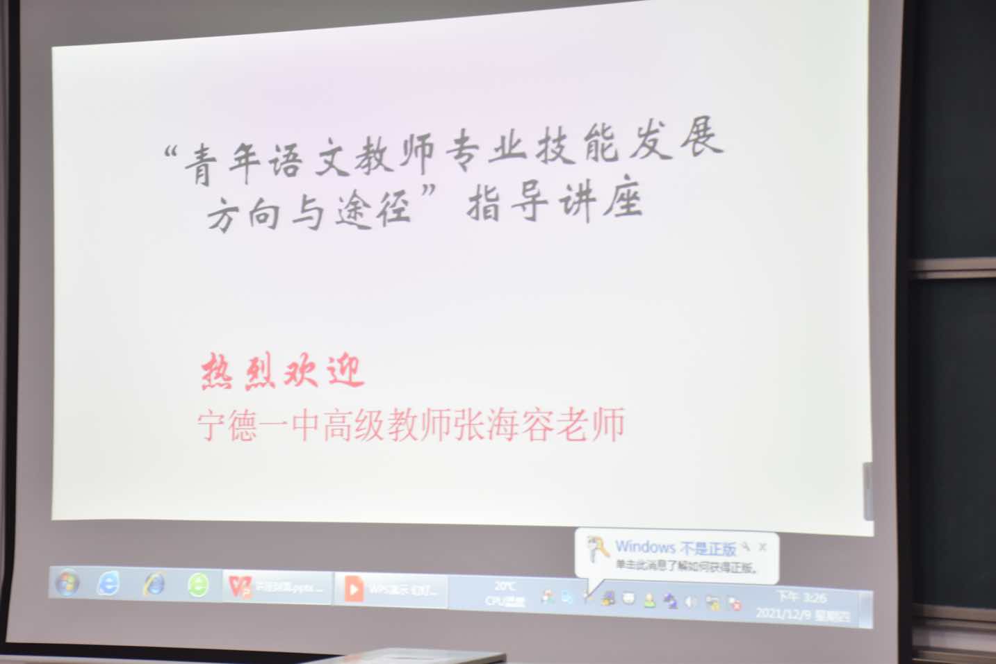 为了提高同学们专业水平和教学技能,进一步提高汉语言文学系师范生的专业素养,更全面地培养应用型教师,在12月9日下午,语言与文化公司举办以“青年语文教师专业技能发展方向与途径”为中心的主题讲座,宁德一中教研室副主任张海容担任主讲人,此次讲座共有汉语言文学(师范)专业的员工参加。