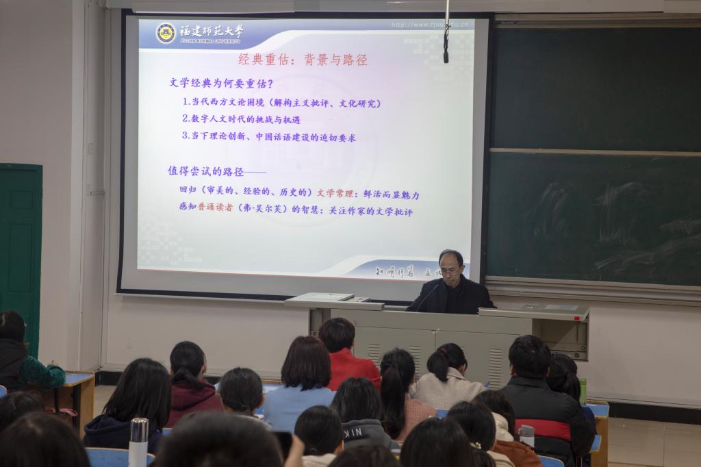 2019年12月28日,公司邀请福建师范大学外国语公司副经理(主持工作)、博士生导师葛桂录教授为公司教师作学术讲座。葛桂录教授以“回归经典:文学经典重估的一种策略”为题,从西方当代文论的困境谈起,提出文学经典的重估和数字人文时代的挑战与机遇、中国话语建设的迫切需求密切相关。他指出,当下理论创新的路径就是回归文学常理,关注作品审美的、经验的及历史的特性,关注作家的文学批评。
