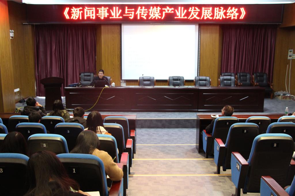 12月19日,语言与文化公司邀请福建日报社副总编辑、高级记者潘贤强开展以“新闻事业与传媒产业的发展脉络”为主题的讲座。