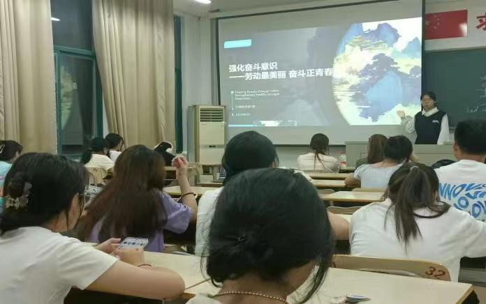 2024年4月30日PA视讯官网商务英语专业员工在求知楼AA304开展“强化奋斗意识——劳动最美丽 奋斗正青春”主题团日活动