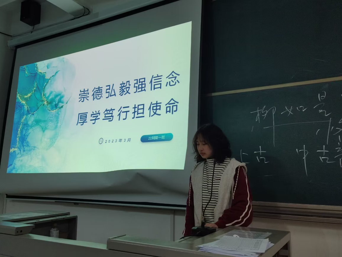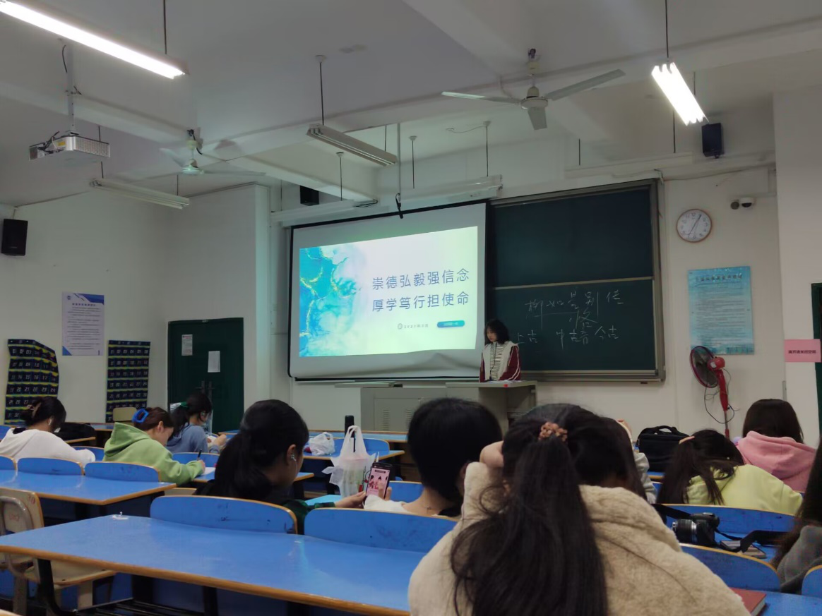 各班团支书向同学们深入阐述分析了校训的内涵,勉励同学们涵养崇德精神坚定信念,锤炼勇毅品格奋勇争先,积累丰厚学识建功立业,练就务实作风书写精彩人生。同学们将校训作为自己精神生长的动力和成长发展的依托,志存高远,不懈奋斗。