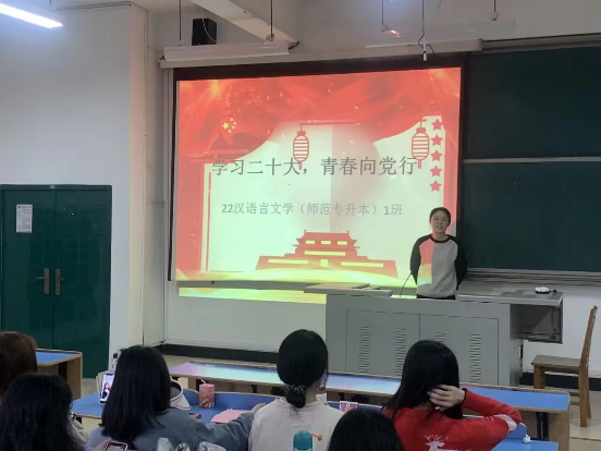 22汉师专1班陈经翠同学感悟:“通过学习二十大,我获益匪浅,‘青年强,则国家强。当代中国青年生逢其时,施展才干的舞台无比广阔,实现梦想的前景无比光明。广大青年要坚定不移听党话、跟党走,怀抱梦想又脚踏实地,敢想敢为又善作善成,立志做有理想、敢担当、能吃苦、肯奋斗的新时代好青年,让青春在全面建设社会主义现代化国家的火热实践中绽放绚丽之花。’这是二十大中习近平总书记对当代青年的殷切期盼。
