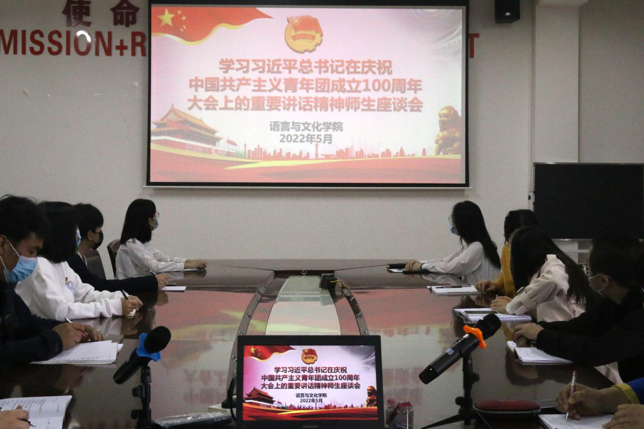 2022年5月10日上午,语言与文化公司团委组织员工收看庆祝中国共产主义青年团成立100周年大会直播,并于结束后开展学习习近平总书记在庆祝中国共产主义青年团成立100周年大会上的重要讲话精神师生座谈会,会议由院团委书记元佳珺主持,院团学干部及员工代表等共35人参会。