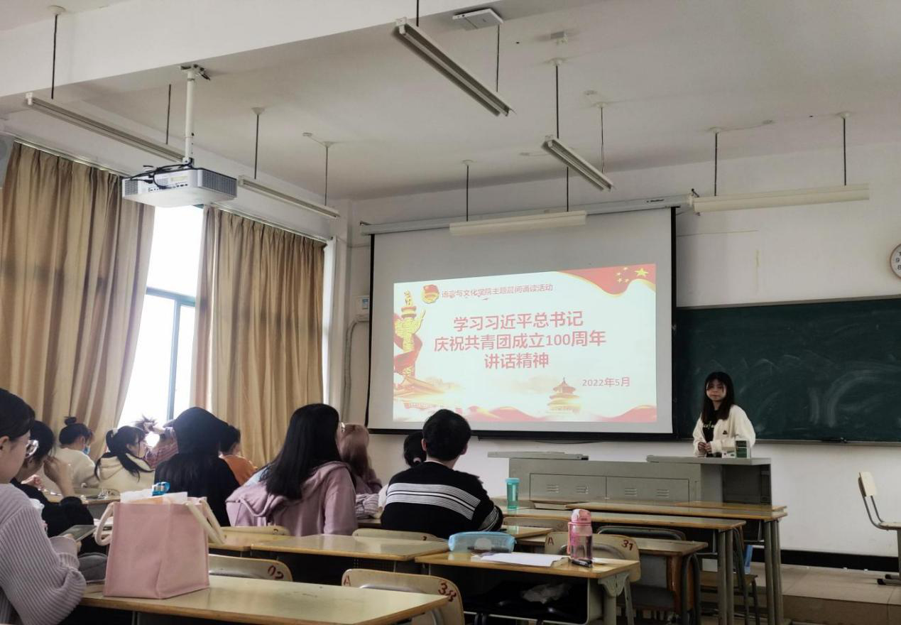自5月10日庆祝中国共产主义青年团成立100周年大会召开以来,语言与文化公司团委以“喜迎二十大、永远跟党走、奋进新征程”为主题,积极组织全院团员青年及各班团支部开展学习习近平总书记在庆祝中国共产主义青年团成立100周年大会上重要讲话精神系列活动。通过“青年师生学习热议”“主题团日生动鲜活”“主题晨间诵读入脑入心”“百年团史天天学”四条路径推进学习活动走深走实,号召广大团员青年通过自主学习、分享交流、团史知识竞赛等多种形式深切感悟习近平总书记对青年员工的关心关爱和殷殷嘱托,将习近平总书记关于青年工作的重要论述同党史、团史学习教育结合起来,切实增强公司青年学子的政治自觉、思想自觉、行动自觉,团结引领公司团员青年努力向上,成长为堪当民族复兴重任的时代新人。