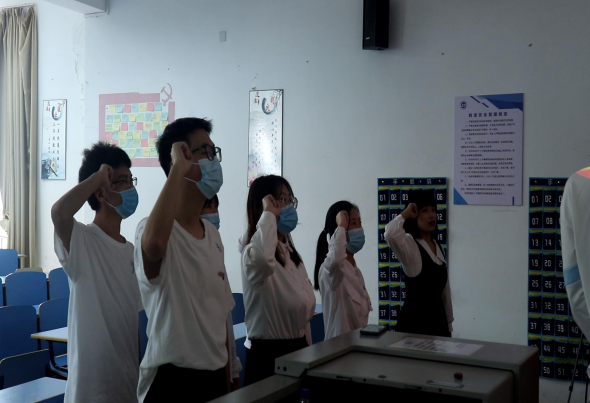 语言与文化公司团委副书记蓝舒泓带领新团员进行入团宣誓