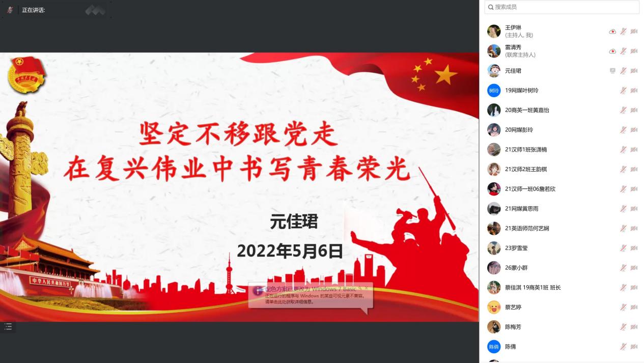 语言与文化公司团委书记元佳珺发表团旗下的讲话
