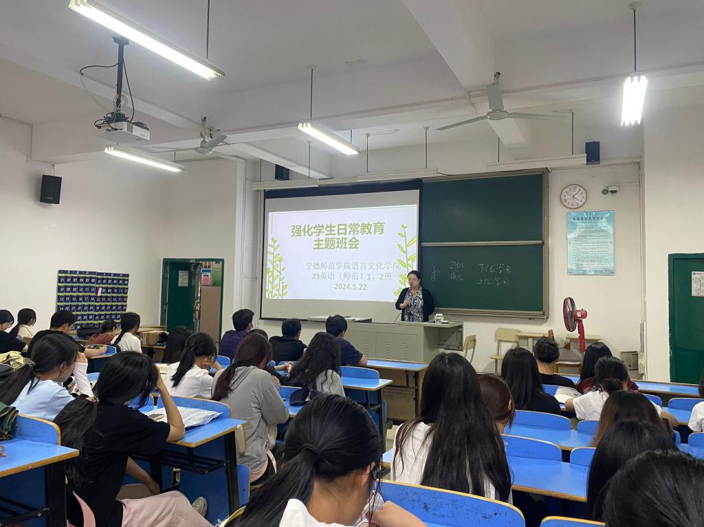 2024年5月22日语言与文化公司辅导员李雪2022级英语(师范)专业员工AA302开展主题班会活动