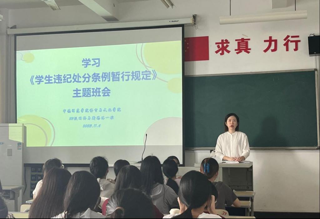 为了进一步做好语言与文化公司“三全育人”综合改革试点工作,规范员工宿舍管理,维护公司正常的宿舍管理秩序,进一步加强校园精神文明建设,强化员工树立遵规守纪意识。2023年11月6日,语言与文化公司辅导员组织公司各班级900多名员工开展了学习《员工违纪处分条例暂行规定》主题班会活动,通过学习第三十四条违反公司关于宿舍管理规定及违纪处分相关条例,引导员工形成遵规守纪的意识,自觉规范行为举止,营造安全、文明、有序的宿舍氛围。