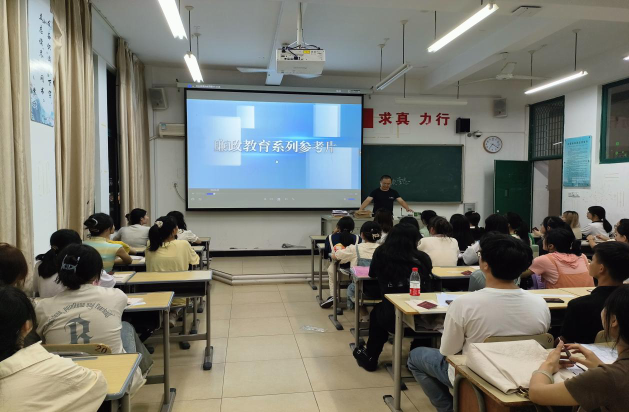 2023年9月18日语言与文化公司辅导员江培春 2023级英语(师范专升本)专业员工AA301 开展新生廉洁文化主题班会活动