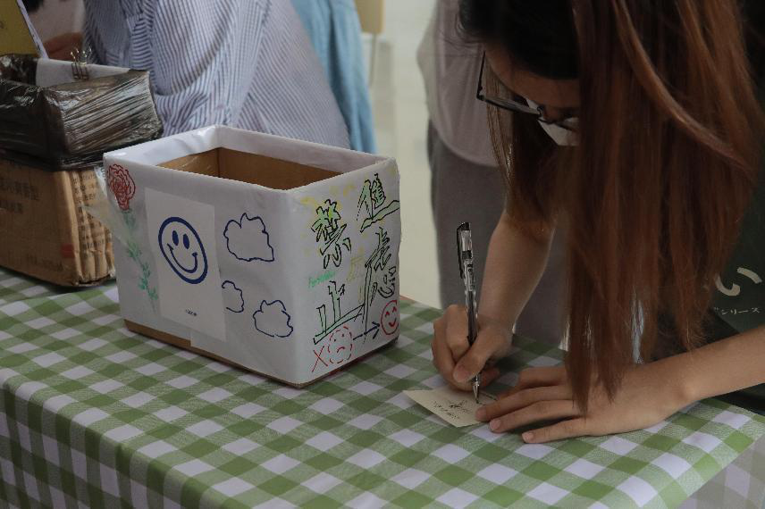 5月16日下午,交换心情盲盒活动准时在语言与文化公司英语角开展,来参加活动的同学们络绎不绝,大家通过便签写下自己的快乐和烦恼,分享情绪体会。这些快乐与烦恼或是从前发生的,或是当下的心境,又或是未来所面对的。然后将快乐投入“快乐放大器”,将烦恼投入“情绪垃圾桶”,而你的烦恼可以在“情绪解忧库”得到回应。