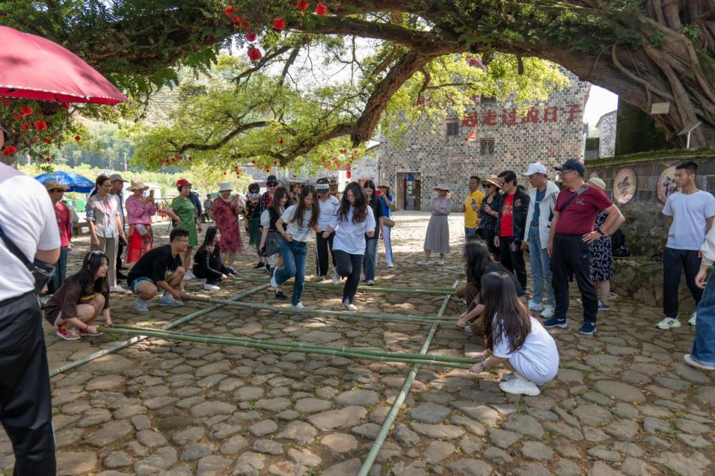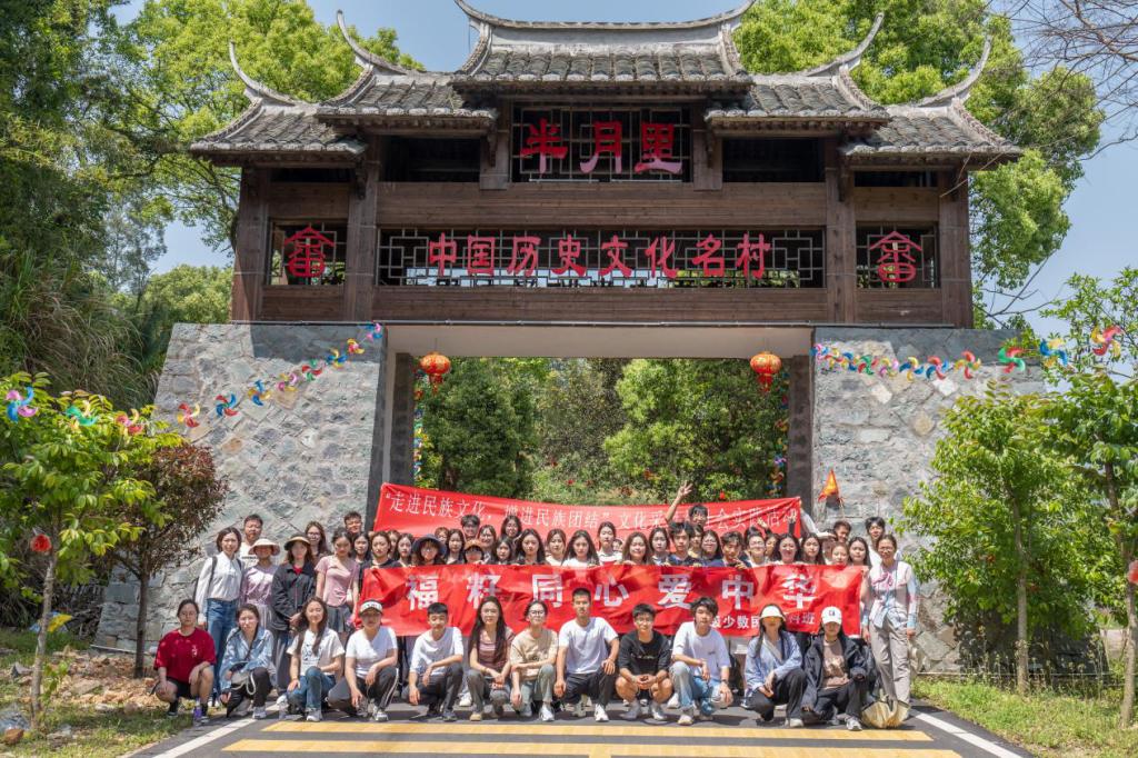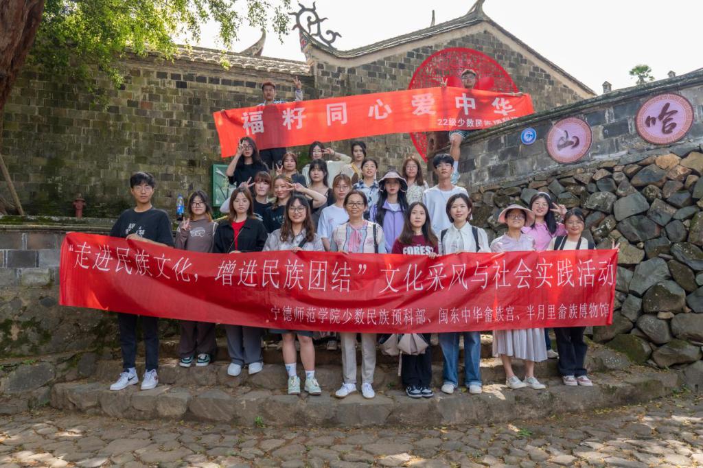同学们走进畲族宫、霞浦县半月里畲族村寨,了解当地优秀传统民族文化,切身感受不同少数民族的文化。在讲解员的讲解下,深入了解了畲族的文化历史、服饰器具、风俗习惯等等,最后的趣味运动“跳竹竿”将活动气氛推向高潮,活泼的游戏让同学们进一步了解少数民族文化的交融与和谐,增强民族共同体意识。