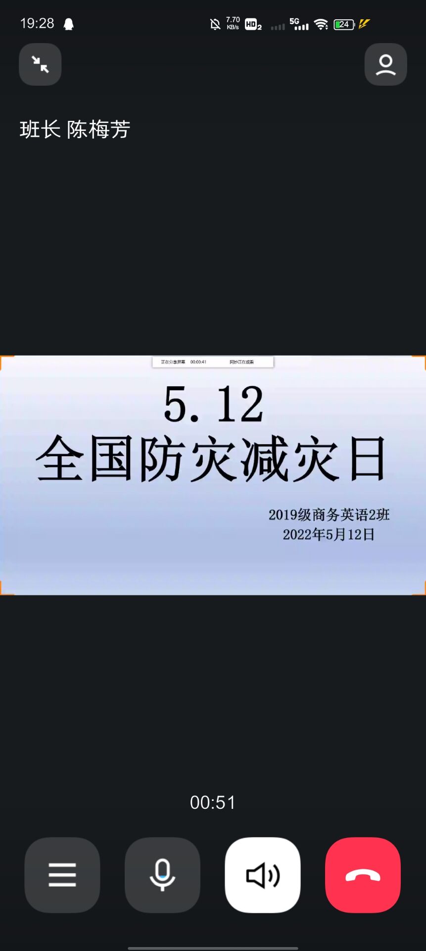2022年5月12日,语言与文化公司辅导员组织全体员工开展“5.12全国防灾减灾日”主题班会活动,组织同学们学习防灾减灾知识,增强同学们在灾害发生时的自我保护能力,提高同学们的防灾减灾意识。