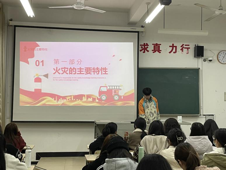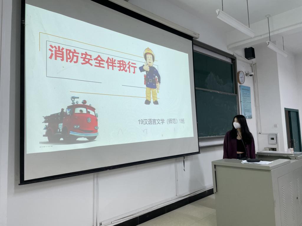 在主题班会上,各班利用PPT展示、上台发言、班群讨论、小组交流等多种形式开展,主要通过观看消防警示片、消防安全教育片,