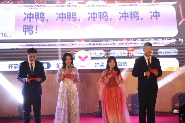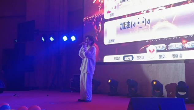 晚上七点,外语歌唱大赛决赛正式开始。首先由语言与文化公司街舞队带来的舞蹈《Yes or Yes》热辣开场。其中演唱《I really like you》的康芷萱同学将现场气氛推向小高潮,清亮的歌声让每个音符都在现场悦动。杨博雅带来的《永不失联的爱(英文版)》悠悠唱响,浸润心扉。在此次活动期间还穿插了互动、表演和抽奖环节,一方面增强了观众的参与感,另一方面更将现场的氛围拉到另一个高潮。最后,由去年外语歌唱大赛决赛冠军林可昕同学带来的演唱《can't take my eyes of you》为今天的决赛画上圆满的句号,充满动感的音乐尚有余味、久久萦绕于现场。本次比赛共有6名选手获得了一二三等奖。其中选手杨博雅摘得桂冠;王婷婷、卢晓钰荣获二等奖;获得三等奖的选手他们是康芷煊、王丽鑫、蔡婉娴;此外还为蓝萍、沈陈薇、汪生岳、雷明强、晏庆怀、林羽欣、陈皓天选手颁发了优秀奖。而在颁奖环节中则由龚帆元教授、林丽丽老师、郑观文老师、杨广烨老师分别为选手颁奖。