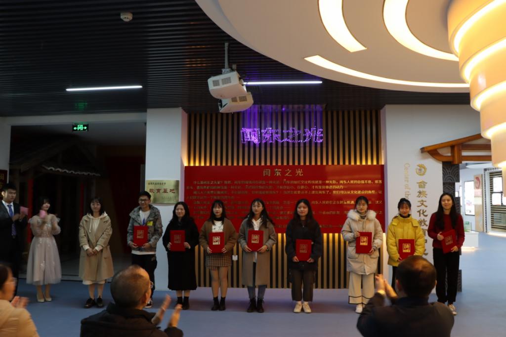 为弘扬畲族文化,选拔畲族文化志愿讲解员,12月22日晚,语言与文化公司在闽东畲族文化教育中心举行志愿讲解员大赛决赛,主题为“弘扬畲族文化,传播闽东之光”。公司党委宣传部卓晓霞、公司党委副书记陶莉、语言与文化公司李益长老师和林文老师担任大赛评委。