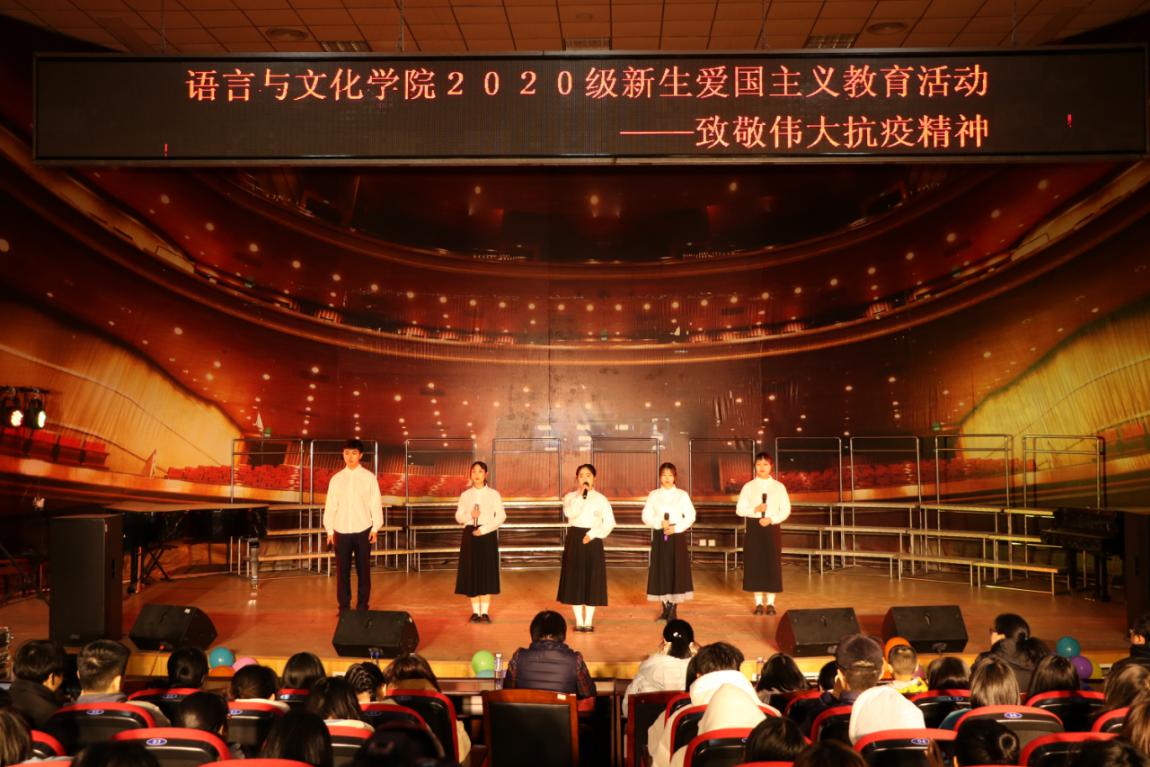为宣传习近平总书记在全国抗击新冠肺炎疫情表彰大会上的重要讲话精神及弘扬伟大抗疫精神。12月19日晚,语言与文化公司在图书馆音乐厅举办“致敬伟大抗疫精神”2020级新生爱国主义教育活动。
