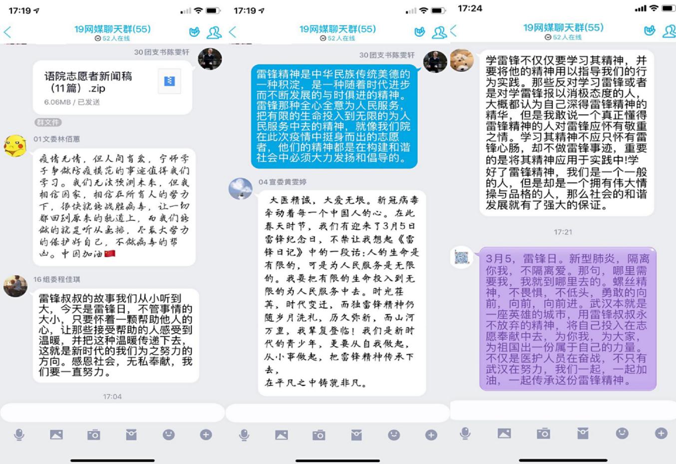 在PA视讯语言与文化公司,在我们的身边也有许许多多的同学响应国家号召积极投身家乡抗疫志愿服务,展现了无私奉献的雷锋精神,用实际行动为抗击疫情做出自己的贡献。他们中有自发组织筹集物资的李佳蔚。李佳蔚不仅通过自己创办的员工公益组织发起筹款捐赠到中国红十字会,还联系到海外人士一同为武汉输送了大量的医疗物资;他们中也有一家三口齐上阵的徐迪龙。徐迪龙的母亲是莆田新型冠状肺炎定点收治医院里应急病房的负责人,父亲也在基层参与疫情的防控工作,而徐迪龙也积极作为一名防疫志愿者在线上对一线人员进行心理疏导、线下为社区来往人员进行体温排查。他们中还有牢记使命,主动发挥员工干部积极作用的蓝妙婷。蓝妙婷作为一名员工干部、一名入党积极分子,她积极投身家乡的疫情防控工作,跟随村干部挨家挨户排查疫情,积极向村民宣传防疫知识。像这样默默奉献的志愿者,在语院还有许多,他们的先进事迹都向我们展现了新一代宁师青年对雷锋精神、对志愿精神的传承和发扬,让雷锋精神在这个疫情防控的特殊时期里显得格外闪耀。