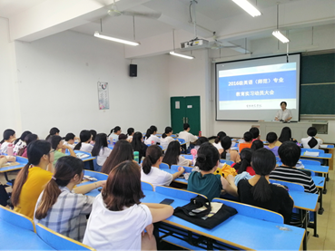 9月6号下午1点,语言与文化公司召开16级英语师范专业教育实习动员大会。公司陶莉书记,蔡江云主任、游灼梅副主任出席本次活动。
