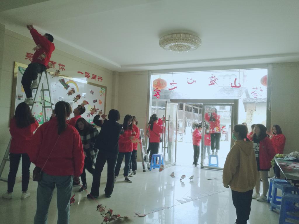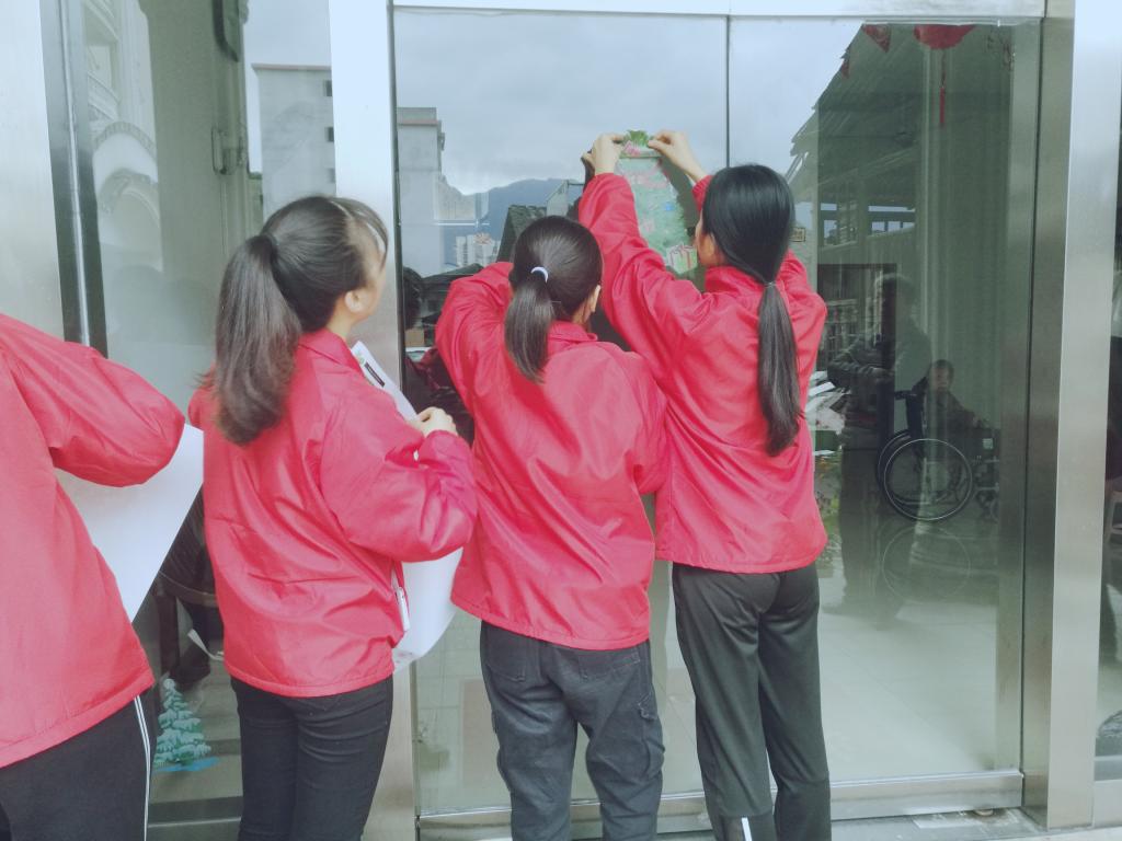 志愿者们在爱心之家老师们的引导下,将所有成员分为两个小分队,分别打扫了孤儿院以及老人院的卫生,为老人和孩子们创造出干净整洁的环境。他们还对孤儿院以及老人院进行了装饰,在两院的大门上贴满了许多有关新年的图案,给爱心之家增添了许多色彩以及暖意。