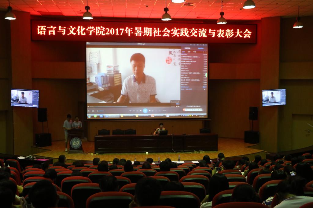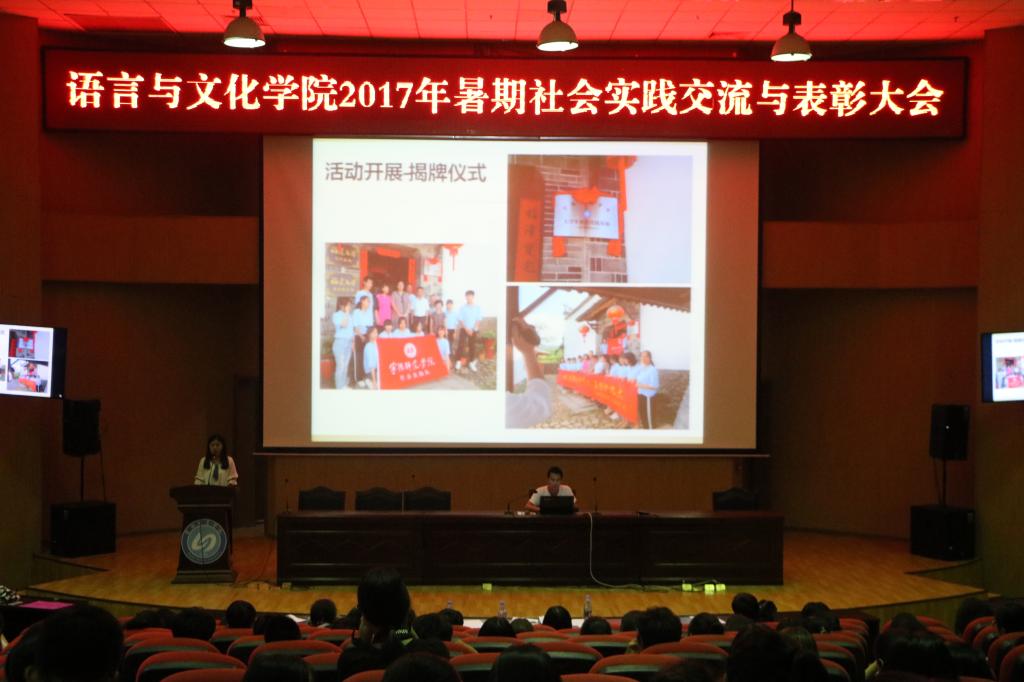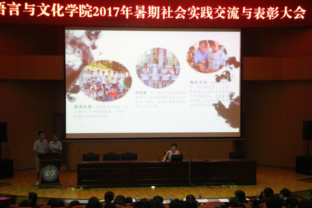 9月27日晚,语言与文化公司暑期社会实践表彰大会在图书馆报告厅举行。经过前期的实践与准备工作,共有19支队伍参加了此次交流与表彰大会。公司党委副书记张晓芳、院综合办办公室主任龚劲丹以及各实践队指导老师莅临了此次大会。